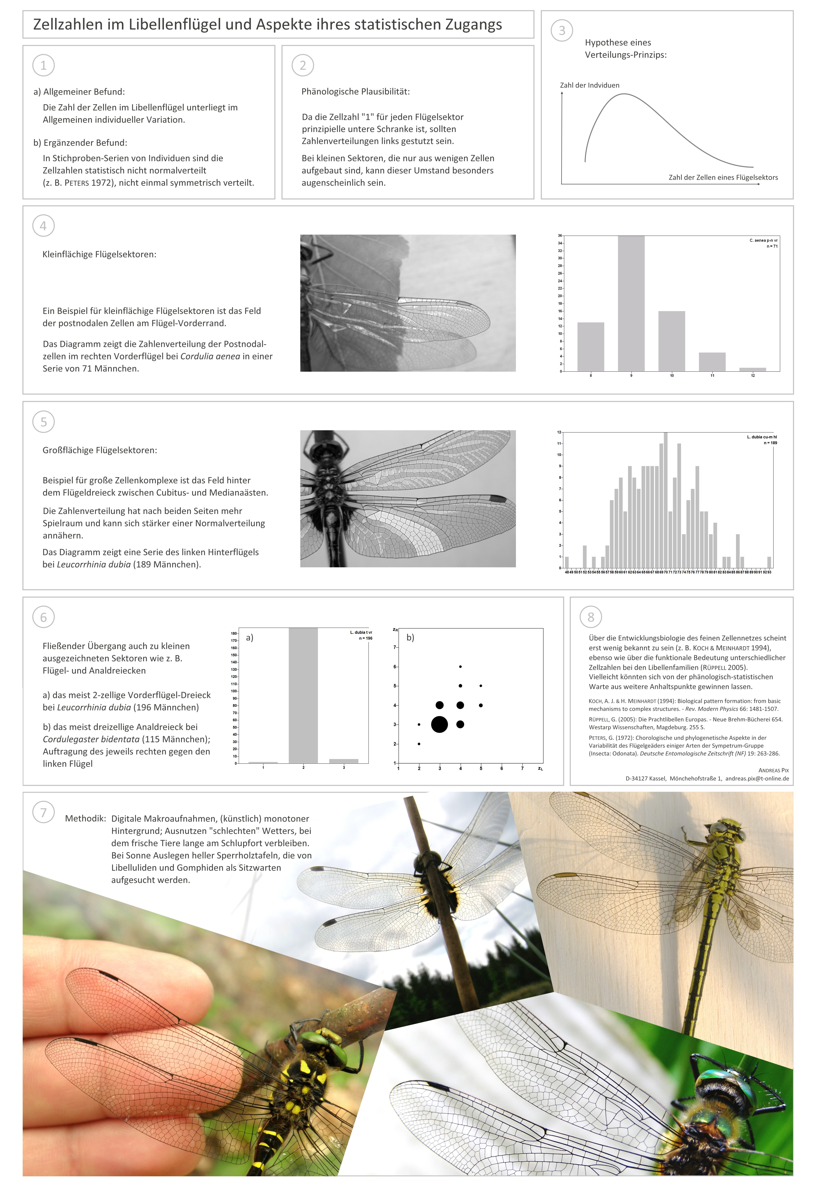Die statistischen Verteilungen der Flügelzellenzahlen im Ensemble der Individuen von Libellenarten sind nicht nur phänologisch stark asymmetrisch, sondern sie sind schief in einem ganz grundsätzlichen Sinn. Ein varianzanalytischer Zugang zu ihnen ist daher nicht möglich bzw. bleibt unzulässig. Mit dieser Intention wurde 2013 folgendes Poster ausgestellt:
